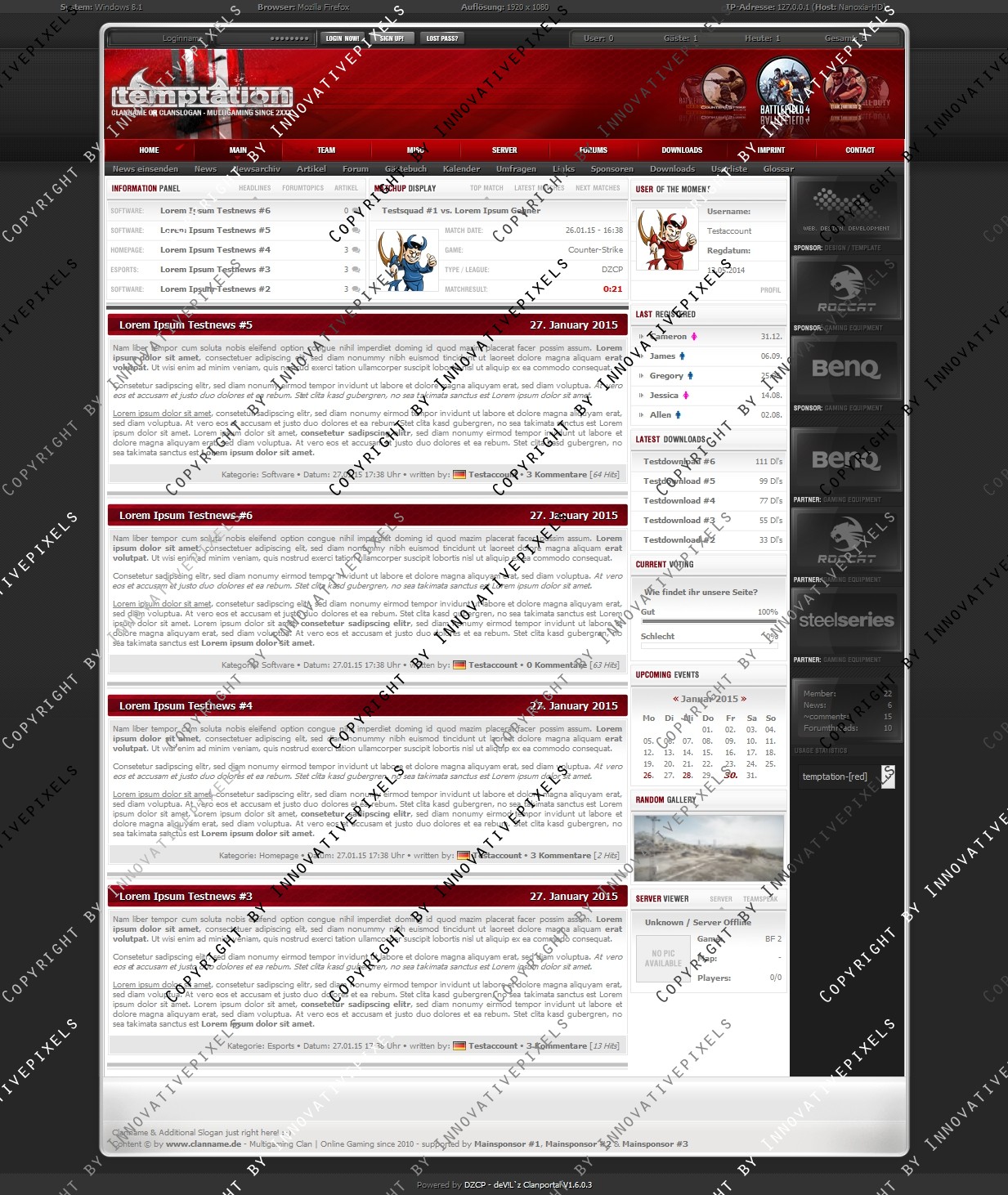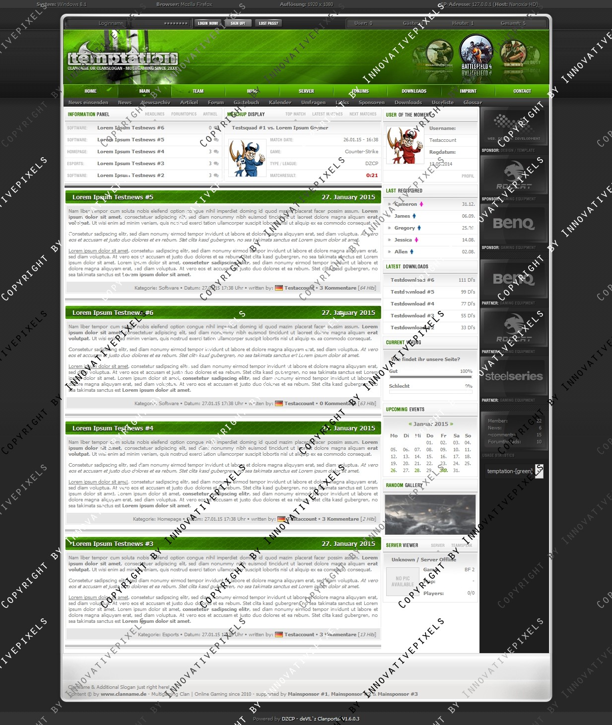 Das Temptation Gaming Template ist ein stylisches Clan & Community Template, ausgestattet mit diversen Modifikationen und Features und bereits umfangreich angepasst an die aktuellste Version des deV!L`z ClanPortals (Version 1.6.0.3).