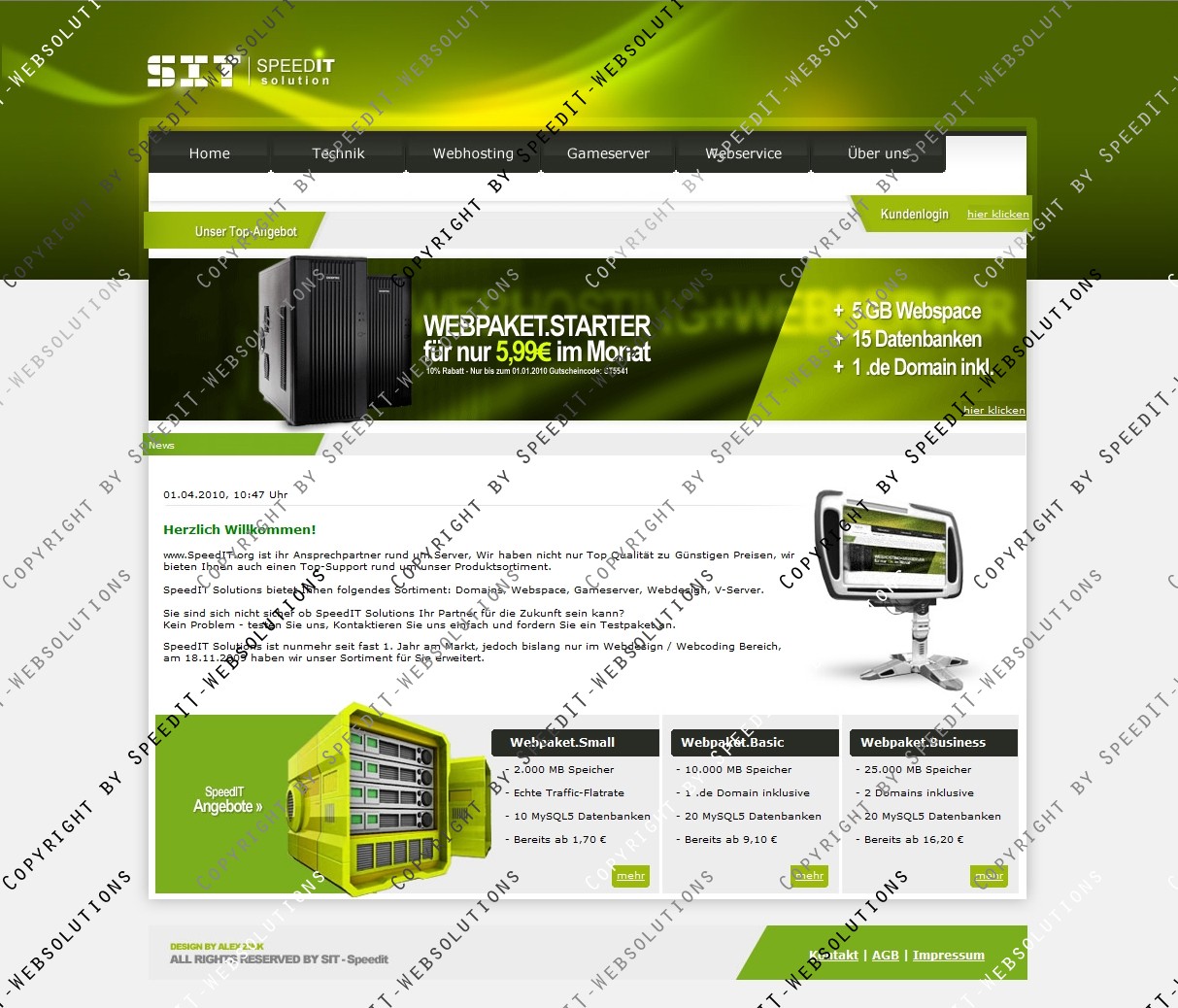 Für jeden Käufer unserer Templates steht ein 15% Gutschein für das Webhosting Sortiment auf SpeedIT.org zur Verfügung, kontaktieren Sie uns für den Gutschein einfach über das Ticketsystem.